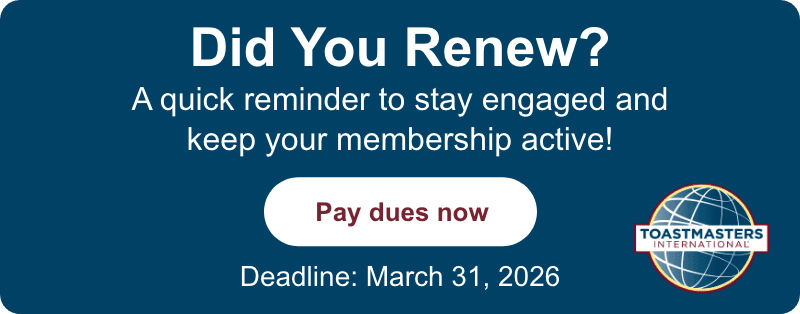 🎯 The first 50 clubs that renew a minimum of eight members and are in good standing by 15 March will receive a $50 Toastmasters International voucher for the Speechcraft Bundle.