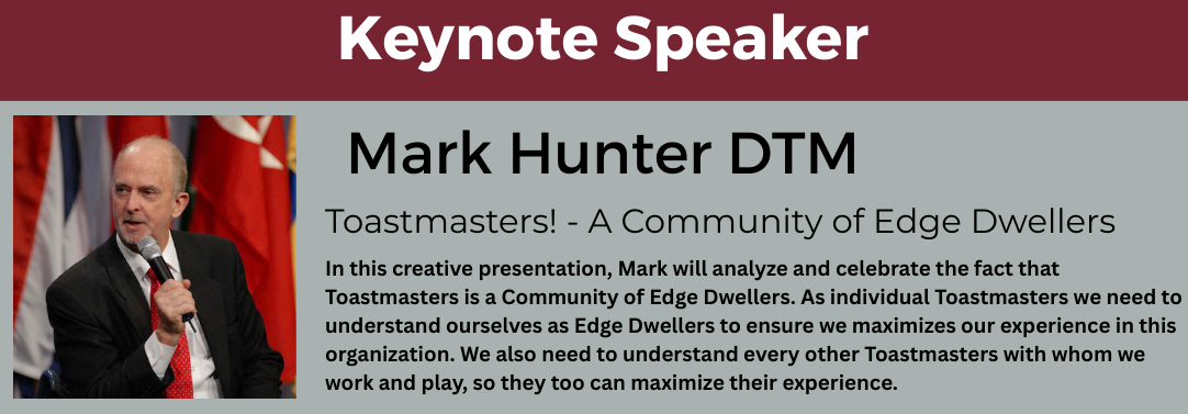 Mark Hunter DTM has made it to the finals of World Championships of Public Speaking (2002, 2007, 2009). He was crowned World Champion in 2009 and in 2012 he received a Presidential Citation. A member for over 30 years, he is passionate about Toastmasters and he firmly believes in the organization’s capacity to provide personal and professional development. He has been in multiple leadership positions for the past 45 years, and has presented keynotes, workshops and educational sessions for organizations at home and abroad. He also trains individuals and groups in the art and science of public speaking.